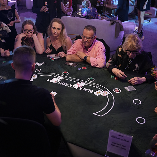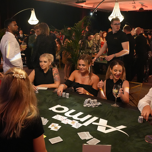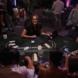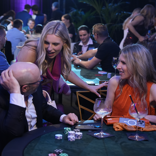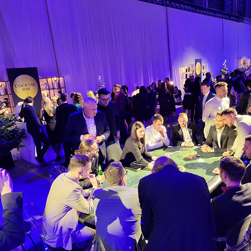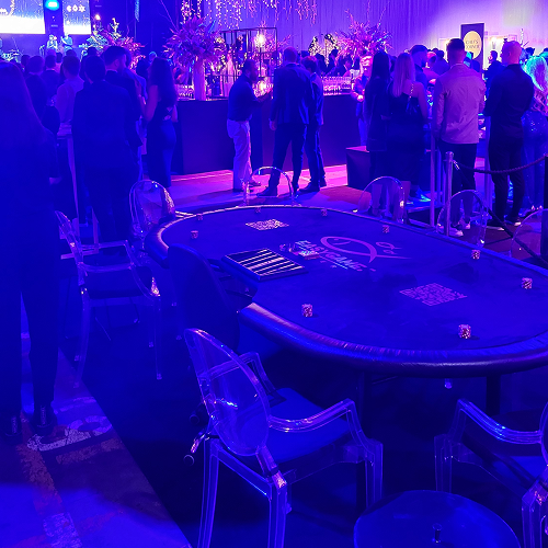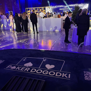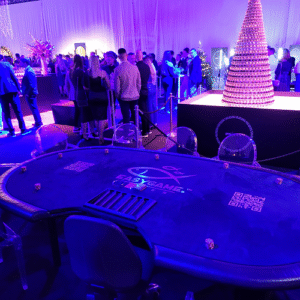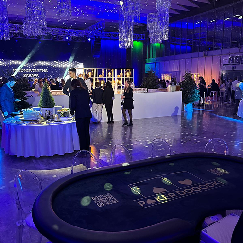 Želite, da bo vaš dogodek drugačen, zabaven in nepozaben? Pri Casino Game z živimi mizami Evropske rulete, pokra, Black Jacka in Caribbean pokra v obliki družabne igre, vaš dogodek naredimo edinstven – popolno za podjetja, posameznike ali zaključene družbe. Igre so tematsko prilagojene, ponujamo pa tudi izjemne personalizacije, ki jih vaši gosti nikdar ne bodo pozabili. S profesionalnim osebjem poskrbimo, da dogodek poteka gladko in sproščeno. Zabava je zagotovljena za vse!